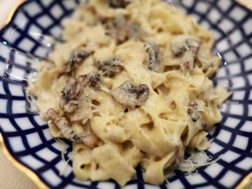 A smooth and indulgent blend of cream, butter, garlic, and parmesan cheese creating a velvety sauce that coats every bite of pasta.